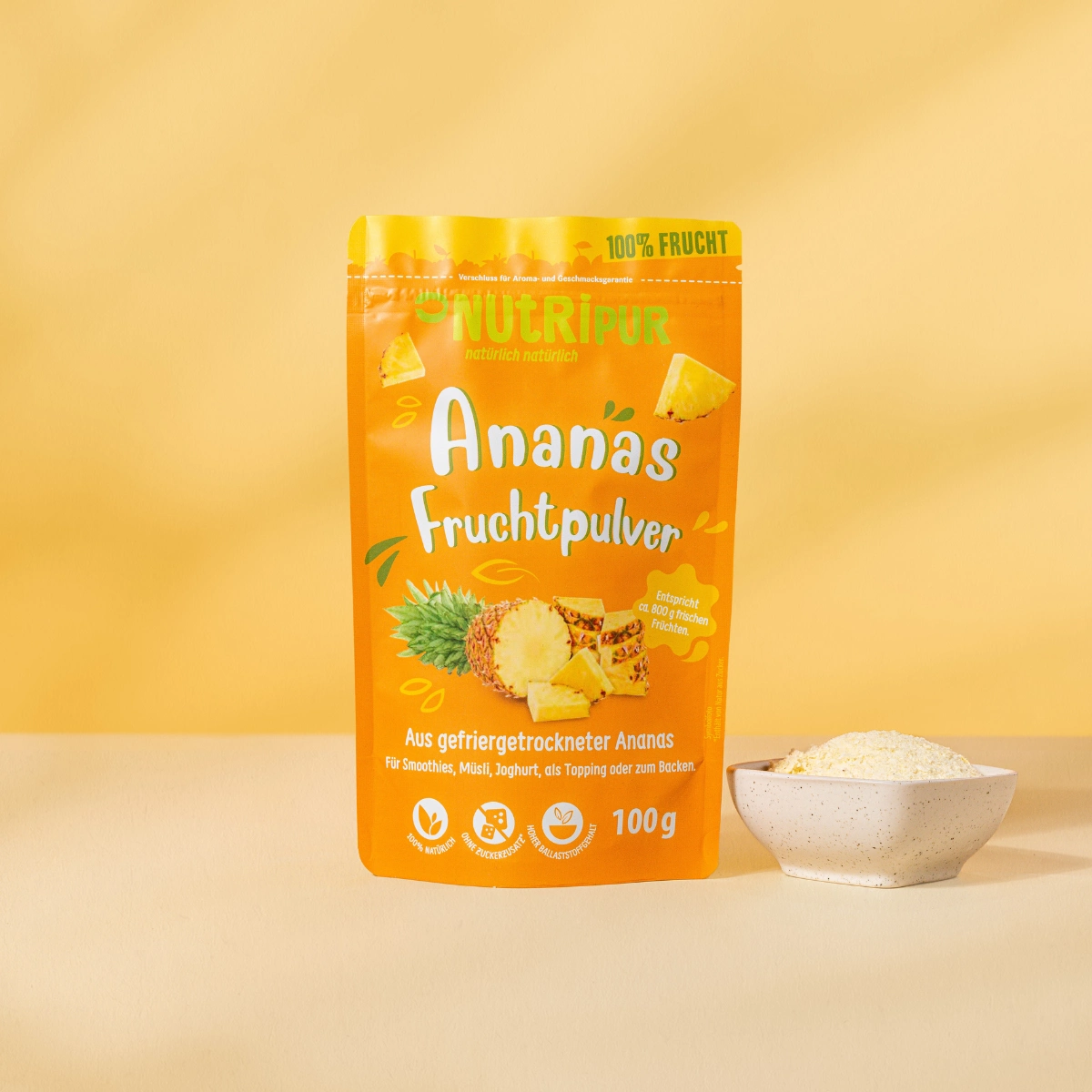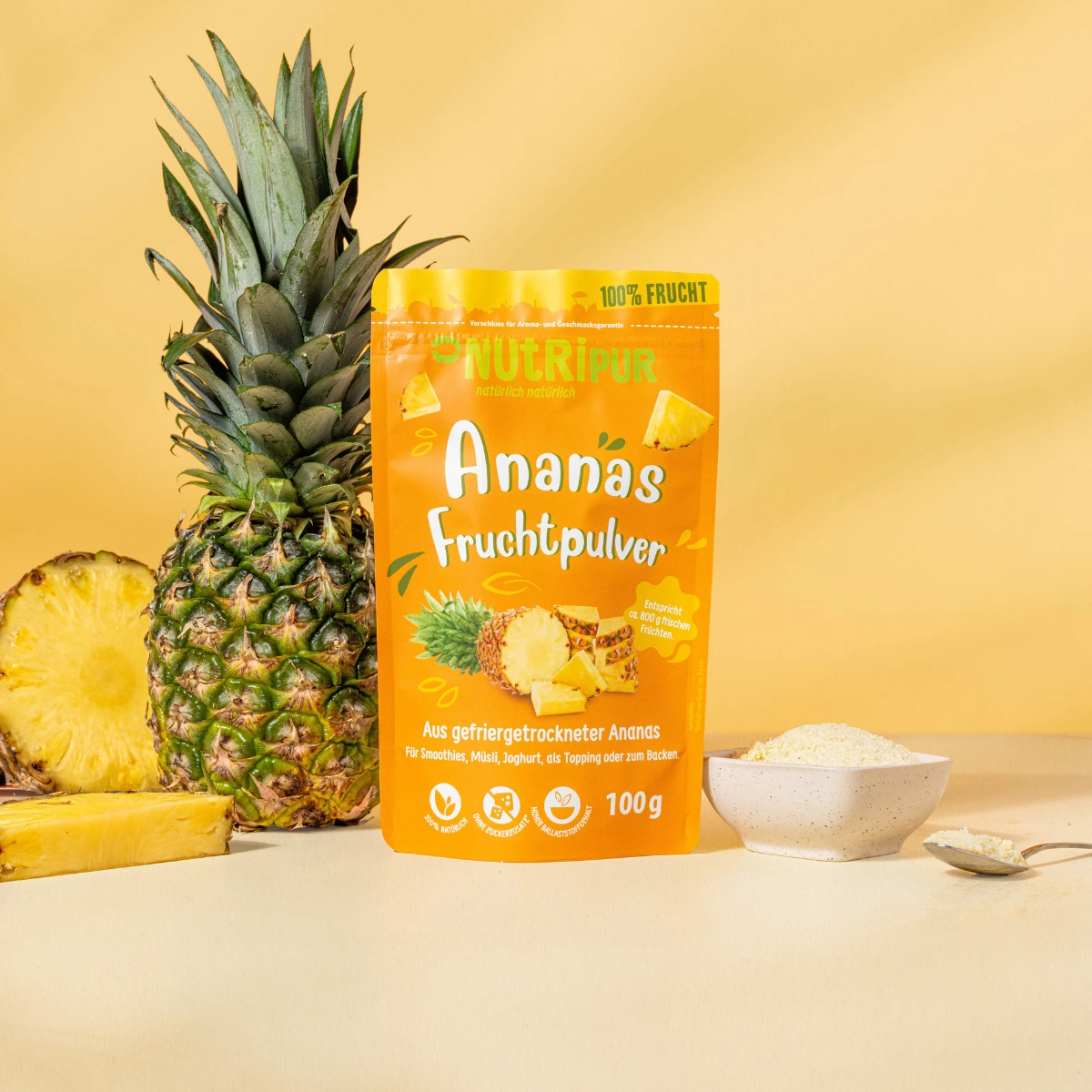 Ren og naturlig: Frugtpulver lavet af 100% frysetørret ananas