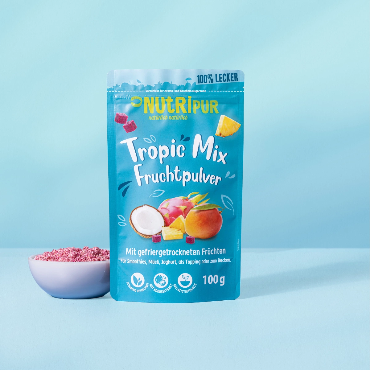Frugtpulverblanding med frysetørrede tropiske frugter.