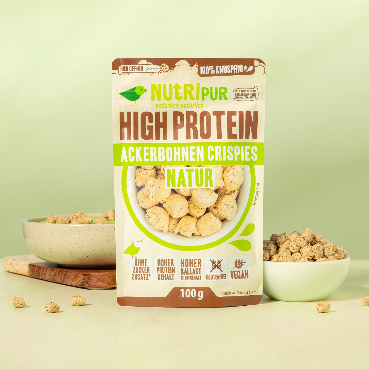 Opdag den ultimative sprødhed og det uovertrufne proteinindhold i vores High Protein Hestebønner Crispies!
