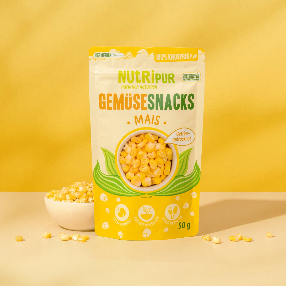 Frysetørret majs er et ideelt alternativ til traditionelle snacks. Frysetørret majs passer perfekt i salat, suppe, bowls eller som snack i stedet for fede chips.