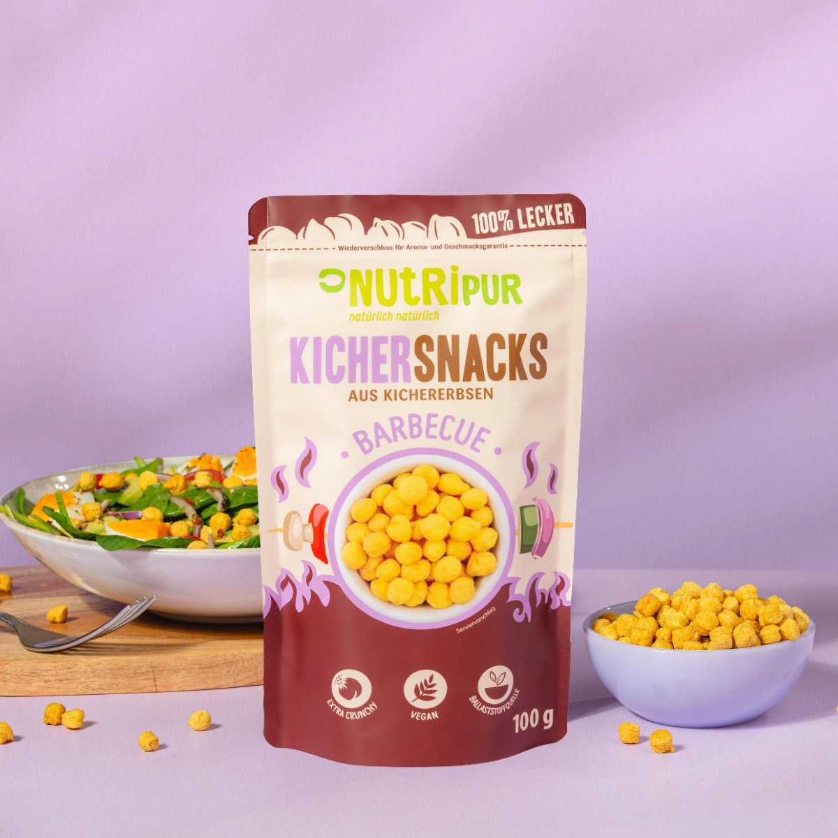 Uanset om det er som snack til mellem måltider, til en hyggelig filmaften eller på farten – NutriPur Kikærtechips Barbecue er altid det rigtige valg. Bare åbn og begynd at gnaske! Snack it!
