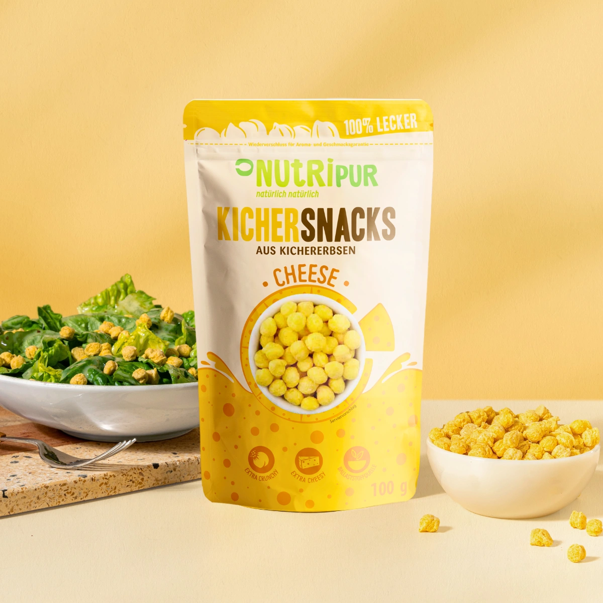 Uanset om det er til en hyggelig filmaften, til fest eller som snack på kontoret – NutriPur kikærtechips med ost er altid det rette valg for dem, der elsker det saltede. Når du først har smagt dem, vil du ikke kunne lægge dem fra dig igen! Snack it!